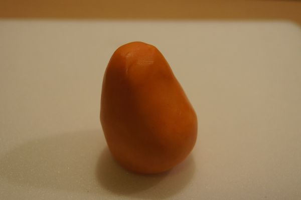 Z kawa艂ka pomara艅czowej masy kszta艂tujemy tu艂贸w – do艣膰 w膮ski ku g贸rze i z du偶ym brzuszkiem.