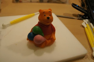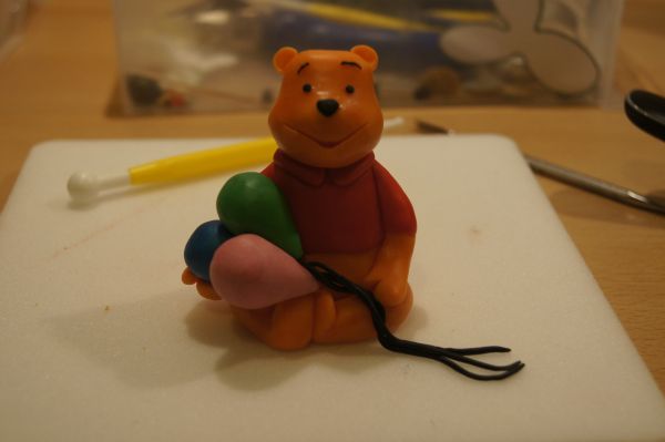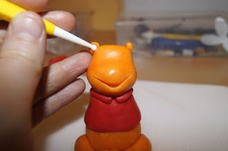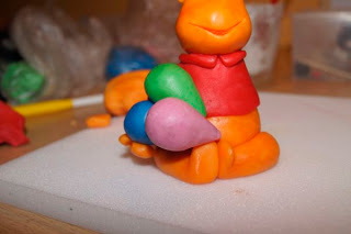 Potrzebuje – mas臋 plastyczn膮 – pomara艅czowa, czerwona, czarna. Opcjonalnie inne kolory (w tym przypadku Kubu艣 trzyma w 艂apkach baloniki). Dodatkowo przygotowujemy narzedzia do modelowania.