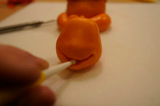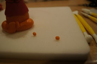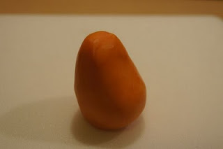 Teraz z kawa艂ka pomara艅czowej masy modelujemy glow臋 – lekko zw臋偶ona na g贸rze i p艂aska 馃槈